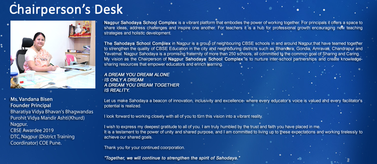 ‘Sahodaya’ a networking concept was launched by Central Board of Secondary Education in the year 1986. In 1996 Sahodaya was conceived by Smt. Shanta Tendulkar, Principal , Ira International School. It took shape in the year 2000. It had around 12 schools under its banner when it hosted 7th National Annual Conference of Sahodaya School Complexes in the year